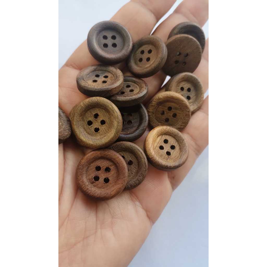 Botão Amadeirado Botão de Madeira Marrom Escuro Café 20mm - 15 UN