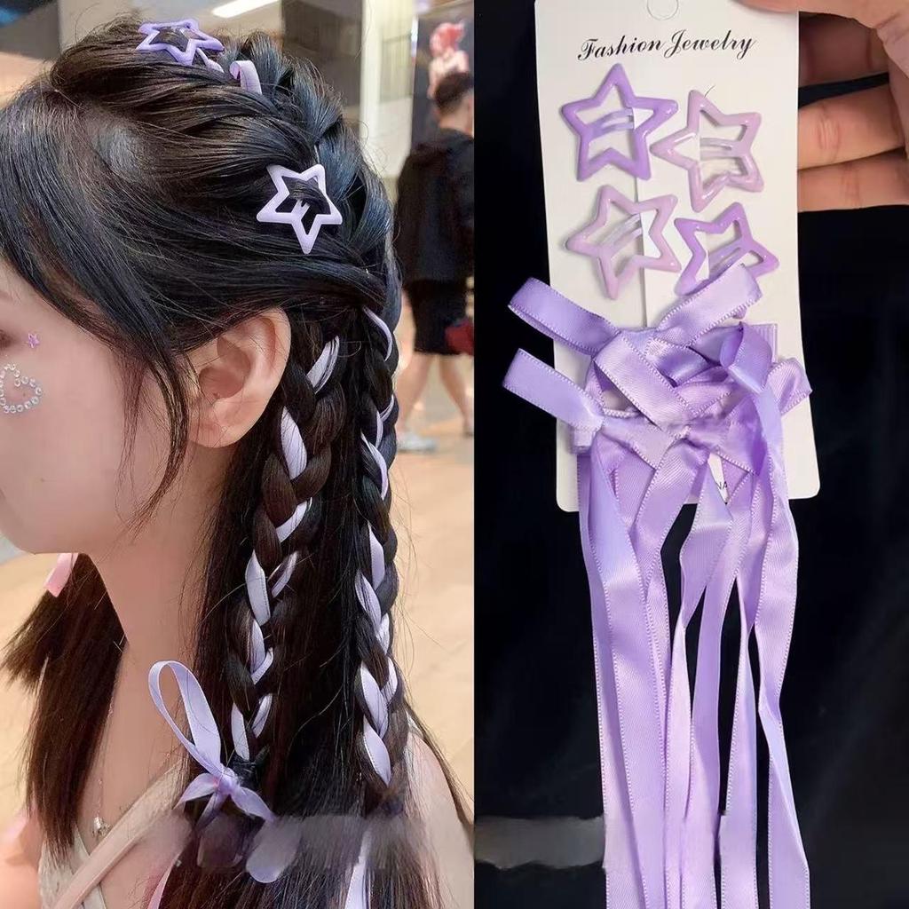 Comprar na ShopeeGrampos De Cabelo Longos Com Laço E Estrela Para Mulheres , Cor Sólida , Fofo , Trançado , Acessórios De Meninas