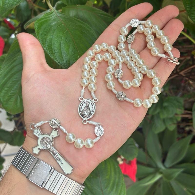 Comprar na ShopeeTerço Pérola Nossa Senhora Aparecida Para Pescoço Carro Com Medalha Metal de São Cristóvão Proteção
