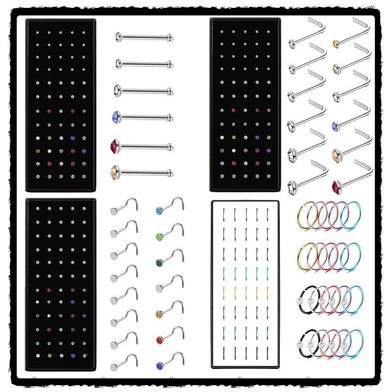 40/60 pces l forma anel do nariz curvo pacote de cristal em linha reta 20g nariz parafuso prisioneiro conjunto nariz parafuso prisioneiro lote piercing nase lote piercing nariz pino
