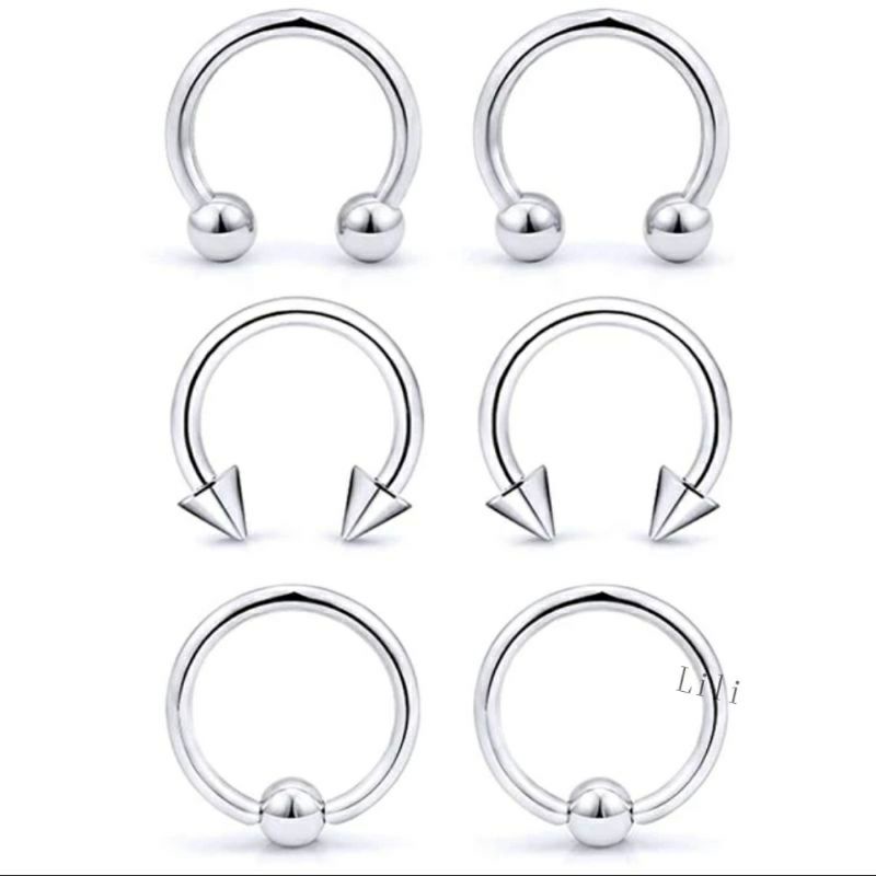 6Pçs Aço cirúrgico septo ferradura piercing aro sobrancella lábio umbigo da barriga