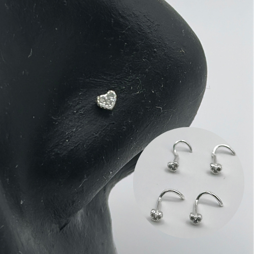 Comprar na ShopeePiercing Nariz Nostril Coração Cravejado - Prata 925 Legítima - Antialérgico