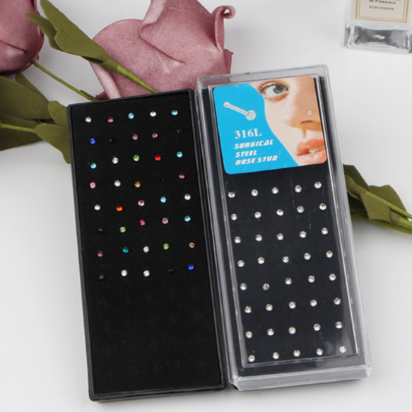 Kit Com 40 Piercing de Nariz Cristal Reto/Dobrar lindo aço inox