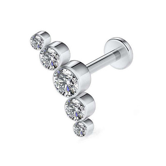 Comprar na ShopeeKit 1-12 Unidades Piercing Labret Aço Cirúrgico com 5 Pedras Zircônia para Orelha Tragus Labial
