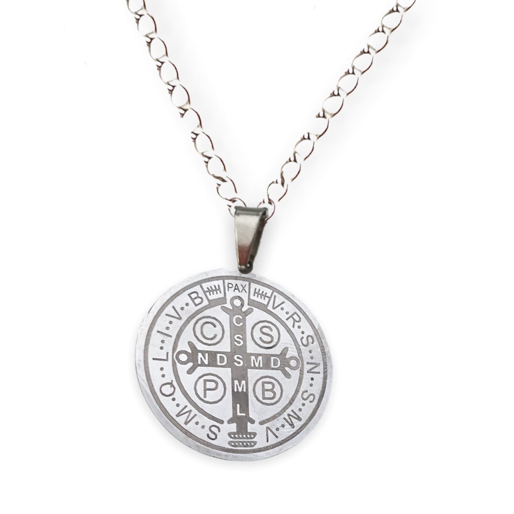 Corrente Pingente Medalha de São Bento Aço Inox