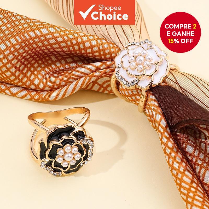 Fivela de Camélia Pérola com Três Anéis para Lenço de Seda