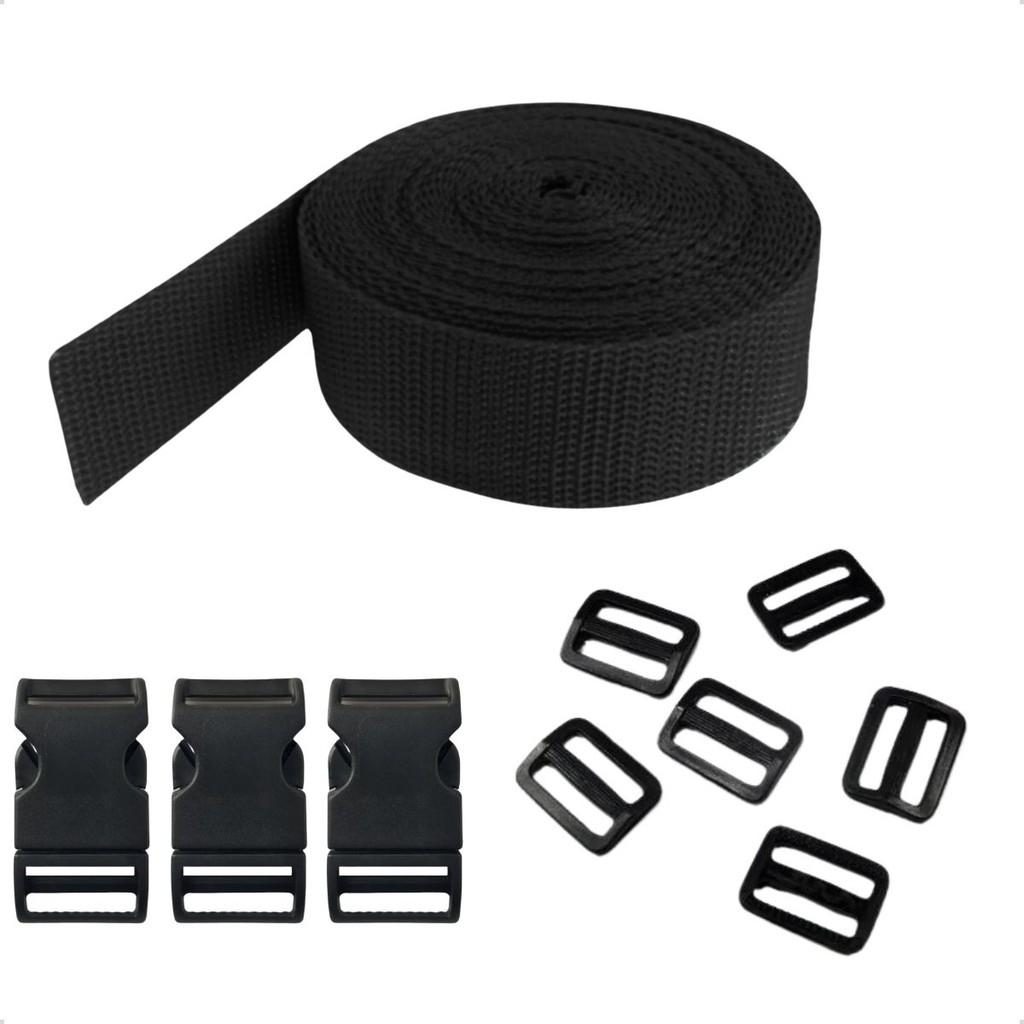 Kit 10 Metros Cinta Ca + 10 Fechos Engate Rápido + 10 Reguladores 20mm Para Mochilas Bolsas