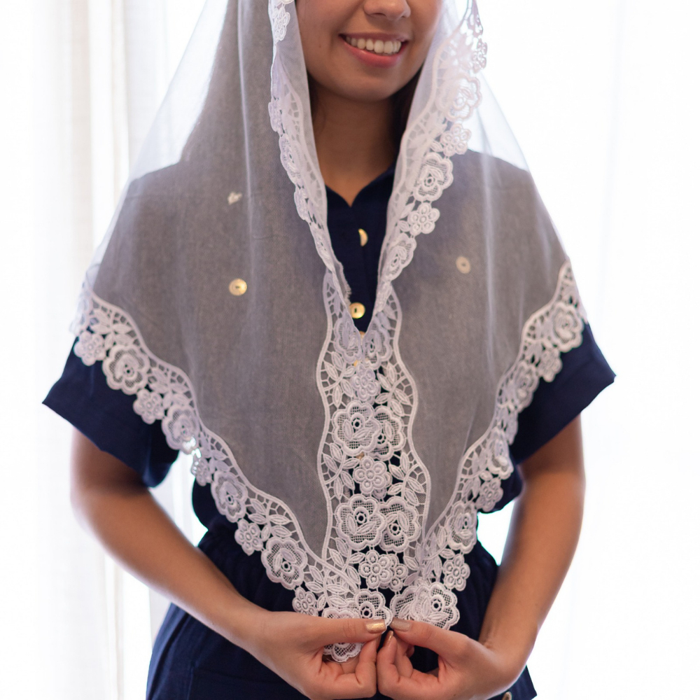 Véu Ccb Congregação Cristã no Brasil Renda Floral de 6CM Com o Tule Filó (Modelo Marta)