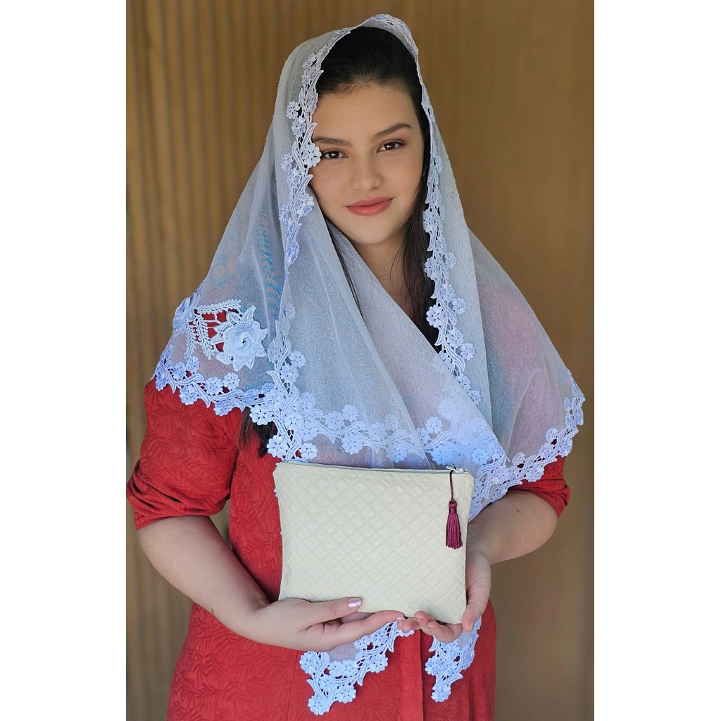 Comprar na ShopeeVéu Católico Feminino Renda Branca Oval Para Missa e Adoração
