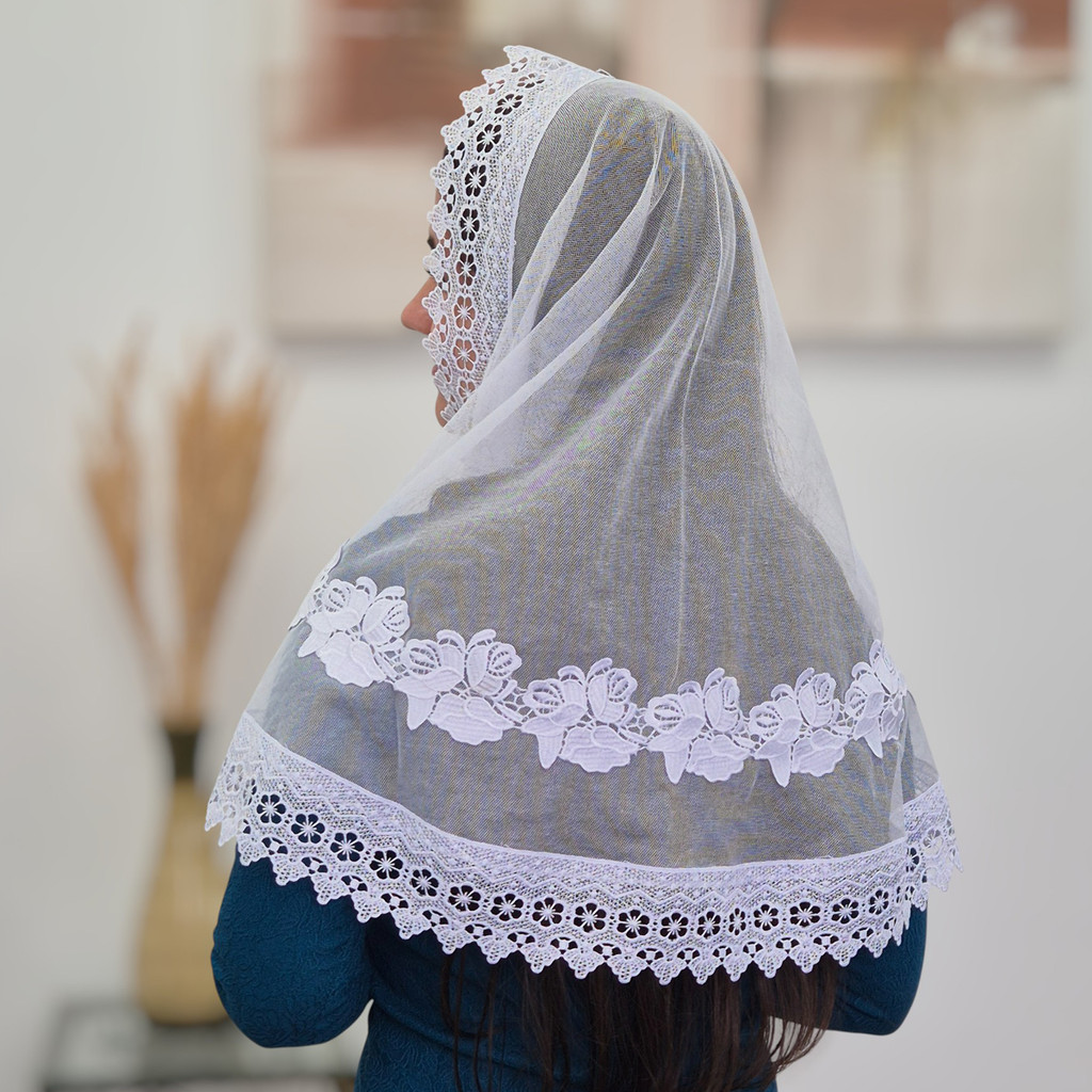 Véu Ccb Congregação Cristã Renda Guipir e Entremeio Floral (mod. Eleonor)