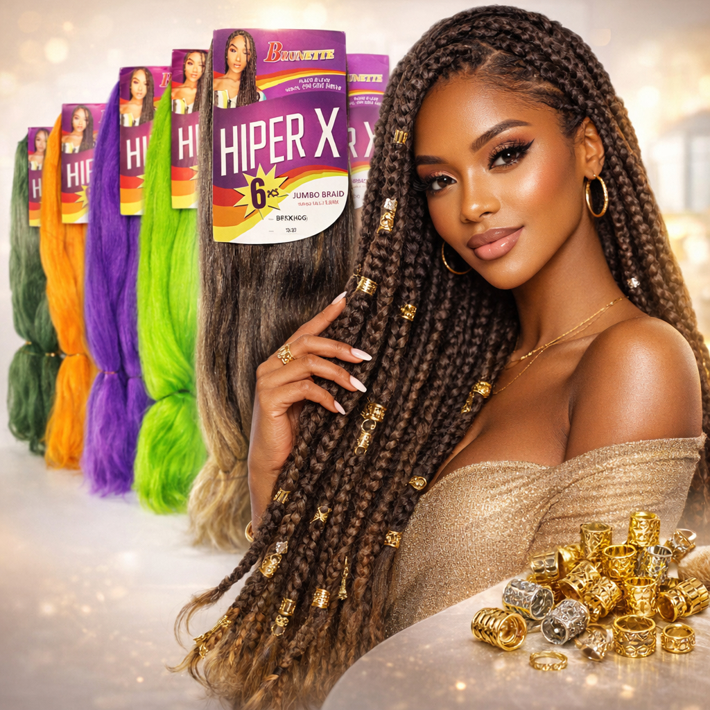 Comprar na ShopeeCabelo Jumbao Hiper X Cabelo para tranças + Anéis de trança Cores variadas, Envio imediato