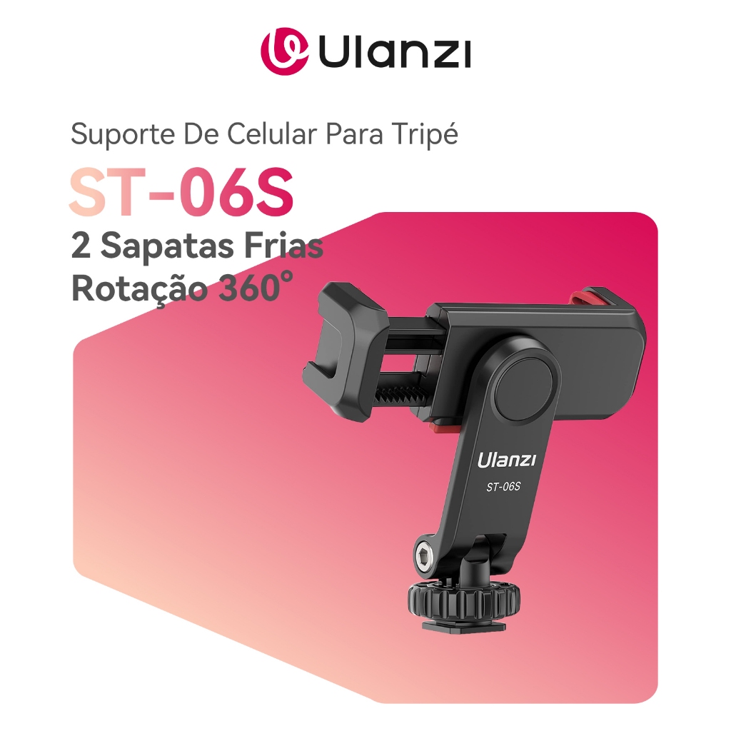 ULANZI ST-06S Suporte De Celular Para Tripé Com 2 Sapatas Frias Rotação 360° Profissional