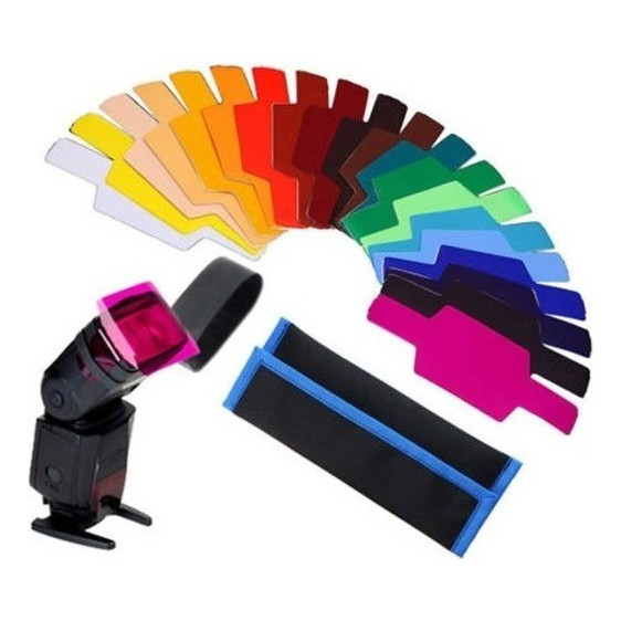 Difusor Flash Speedlite Colorido 20 Gelatinas Gel Com Bolsa