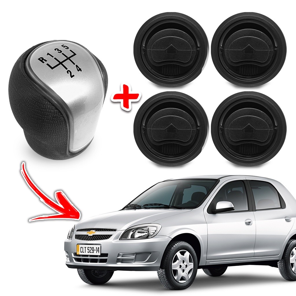 Kit Jogo Grade Difusor de Ar Preto + Bola Manopla de Câmbio Prata Celta Prisma 07/2012