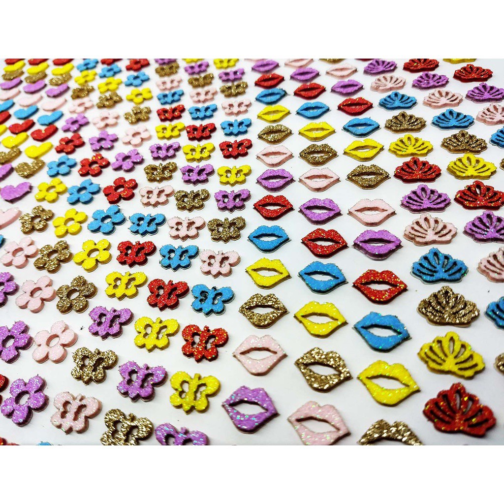 150 Mini Adesivos Pet Piercings Lacinhos Eva Glitter Petshop