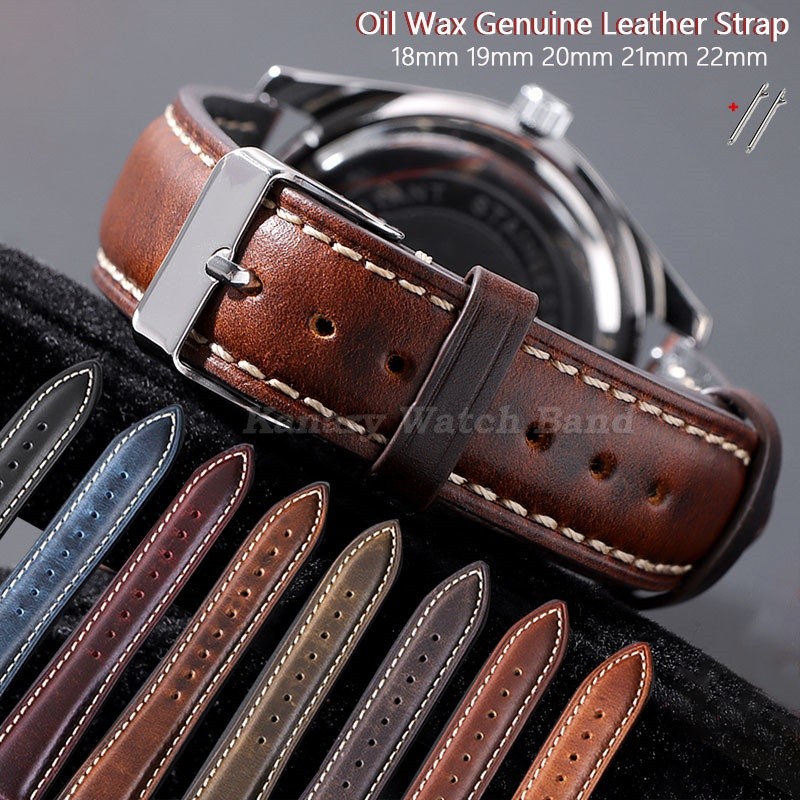 Comprar na Shopee18mm 19mm 20mm 21mm 22mm Vintage Óleo Cera Pulseira De Relógio De Couro Genuíno Liberação Rápida Universal Costurado Ban