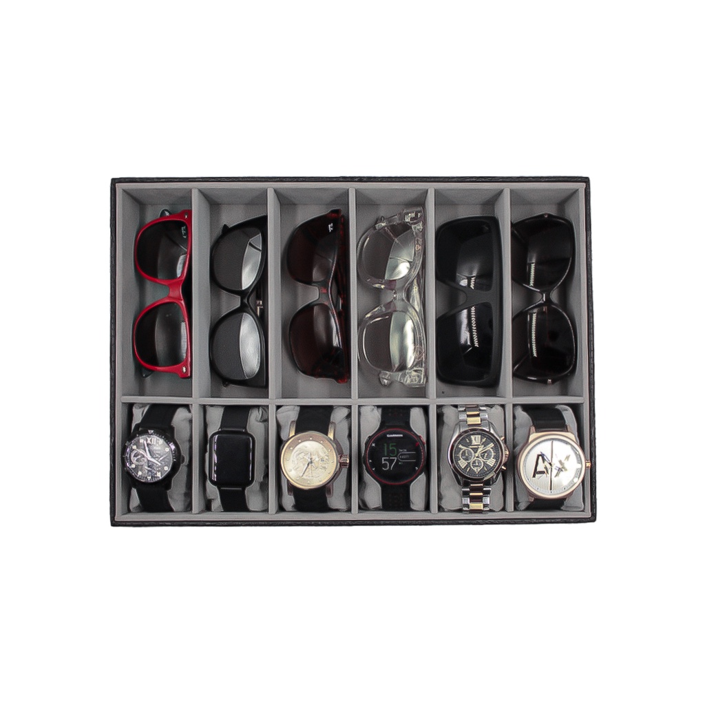 Comprar na ShopeeBandeja Para Organizar 6 Óculos E 6 Relógios Closet Gaveta Preto Com Interno Cinza