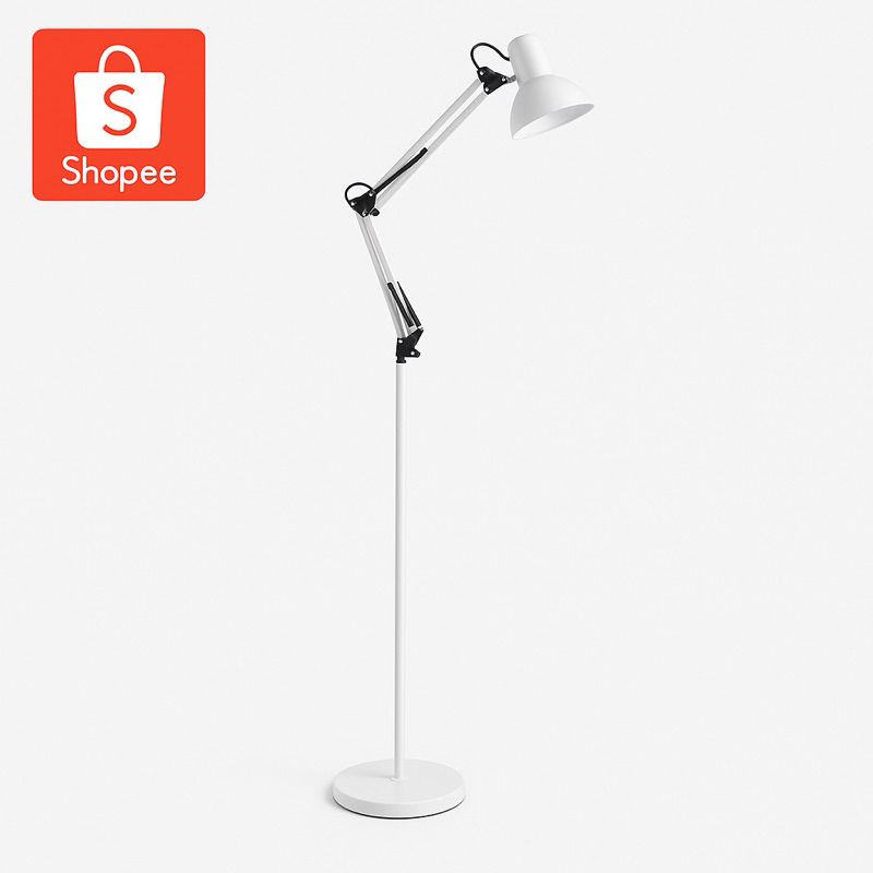 Comprar na ShopeeLuminária de Chão Articulada 1,8m com Cúpula Branca – Pé de Metal para Leitura, Escritório, Quarto e Decoração Moderna