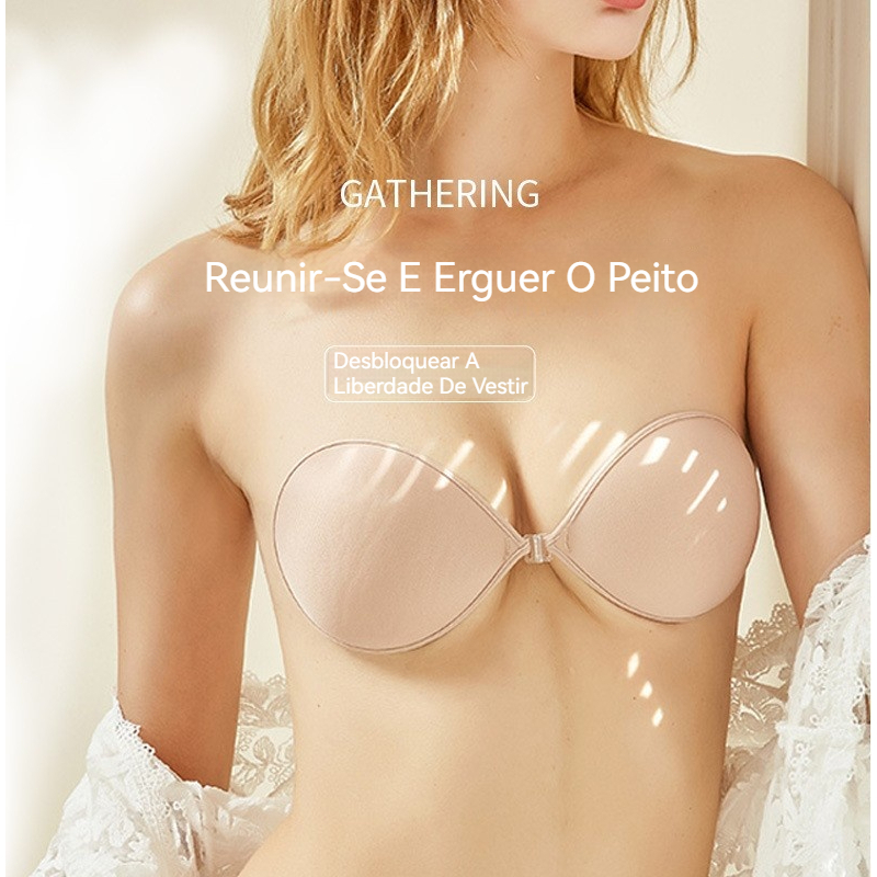 Sutiã Adesivo Invisível Push-up Sem Alças Cola na Pele Ideal para Roupas Abertas e Decotadas Bege