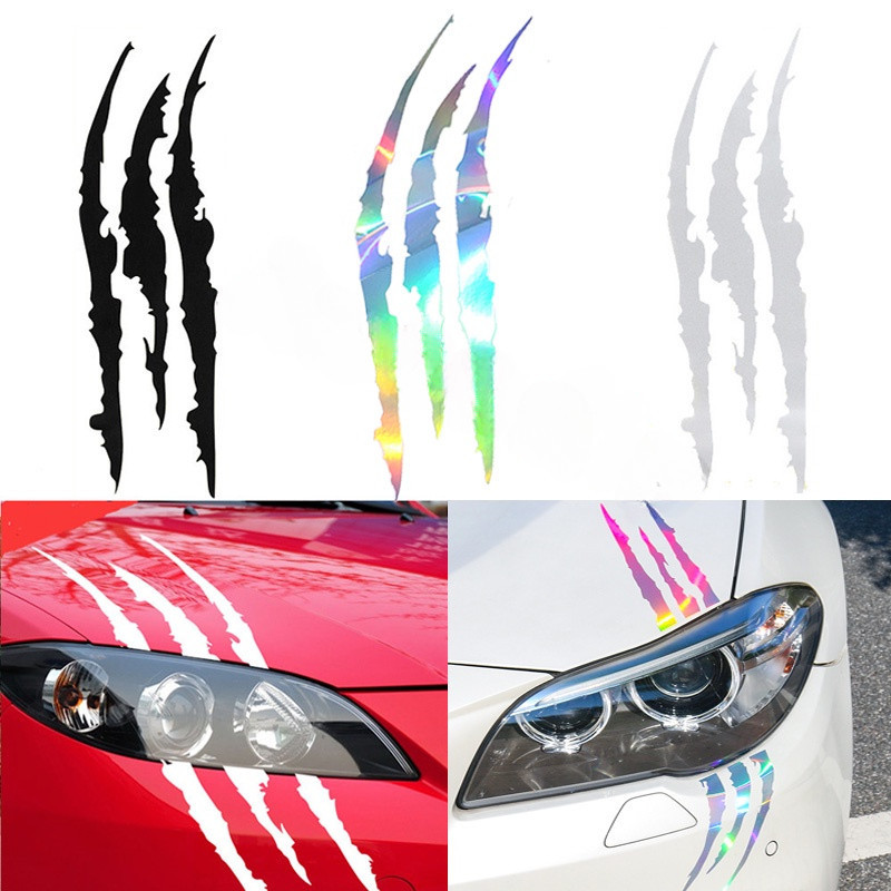 1-2pcs Monster Claw Scratch Decalque Refletivo Autocolante Decoração Carroçaria Emblemas Crachá