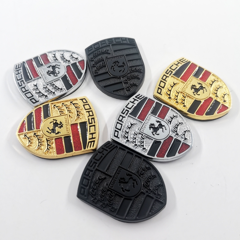 2 x Pequeno Metal PORSCHE Cavalo Logotipo Carro Auto Emblema Decorativo Decalque Adesivo Para