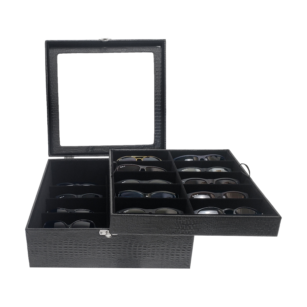 Comprar na ShopeeOrganizador Duplo Estojo Porta 20 Óculos Preto Com Interno Preto Couro Eco