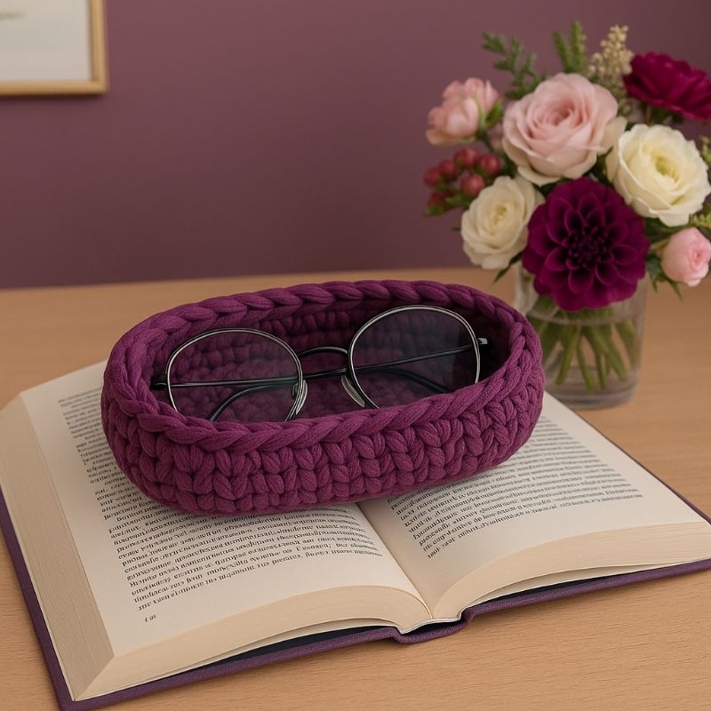 Comprar na ShopeePorta Óculos Mesa- Crochê Fio de Malha / ENVIO IMEDIATO