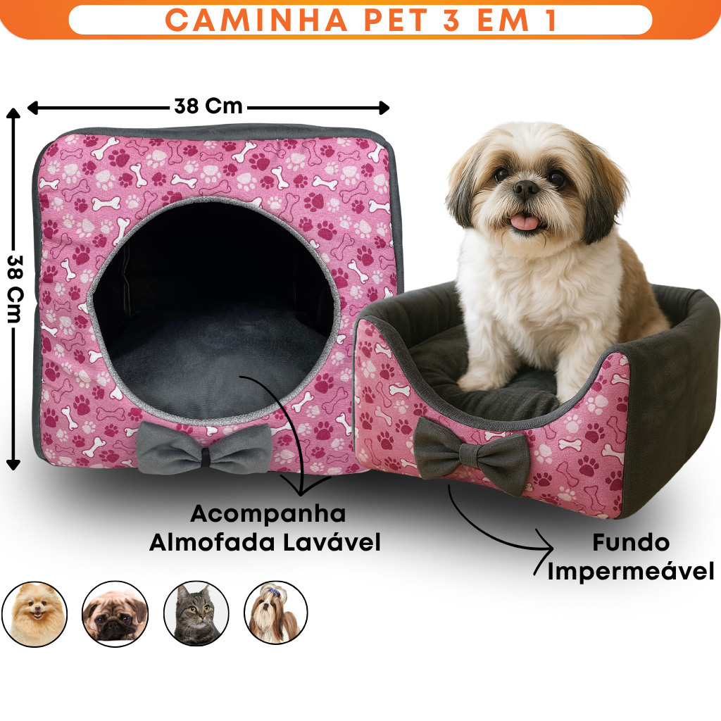 Comprar na ShopeeCasinha cama toca lglu 3 em 1 para cães e gatos tamanho P,M,G,Extra G fundo impermeável colchão removível linha Premium