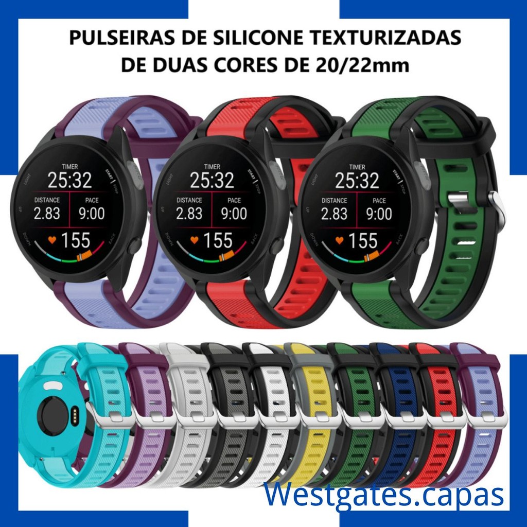 Pulseira de silicone Texturizadas 2 Cores Comaptivel Para Garmin Forerunner 165 Active2 GTR47mm GTS2mini GTR3/PRO 20/22