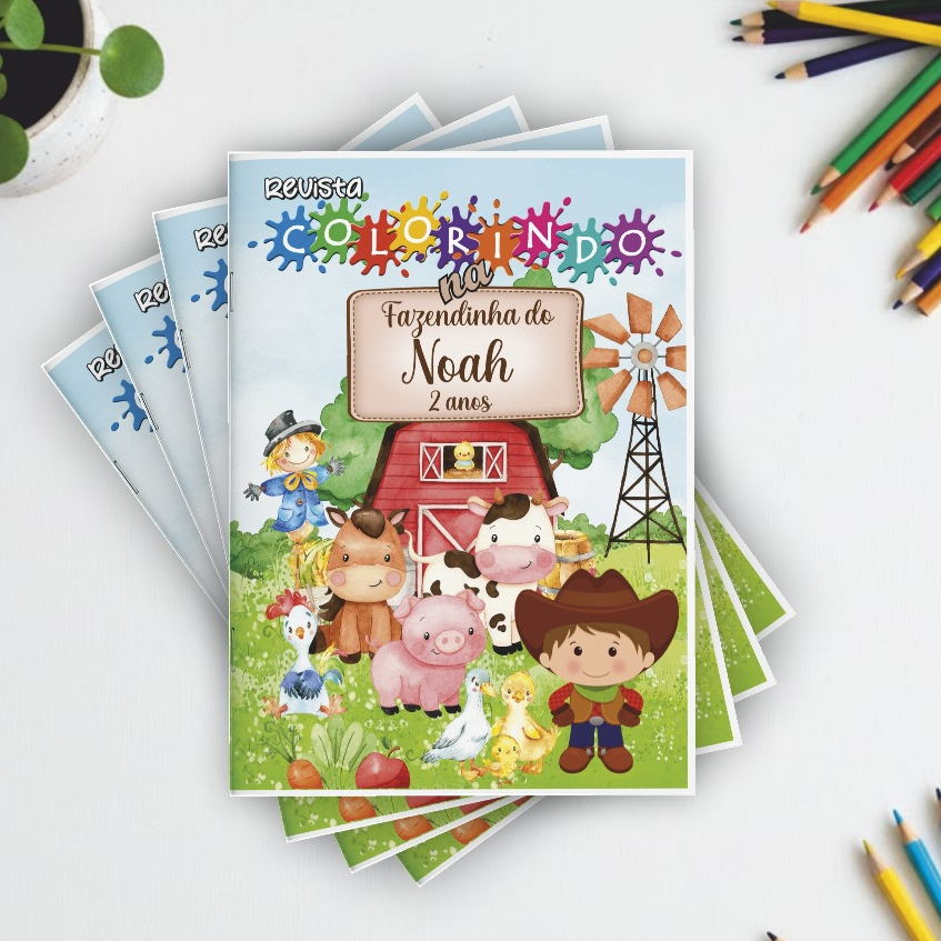 10 Lembrancinha de festa revistinha PERSONALIZADA de colorir Fazendinha 14x21cm - fazemos vários temas