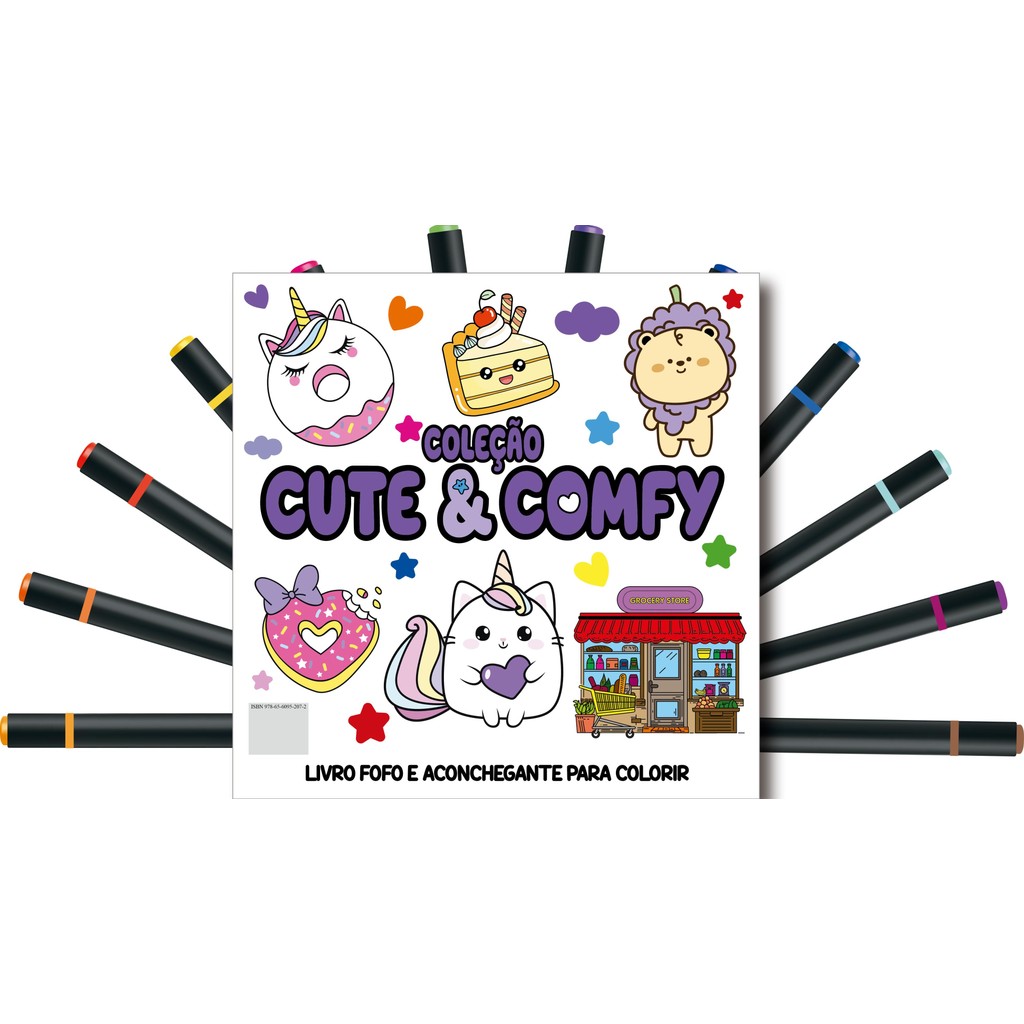 Cute & Comfy Coloring Book for Adults Edição 3 - Bold Easy - Livro de Colorir Adulto + 12 Canetas L133