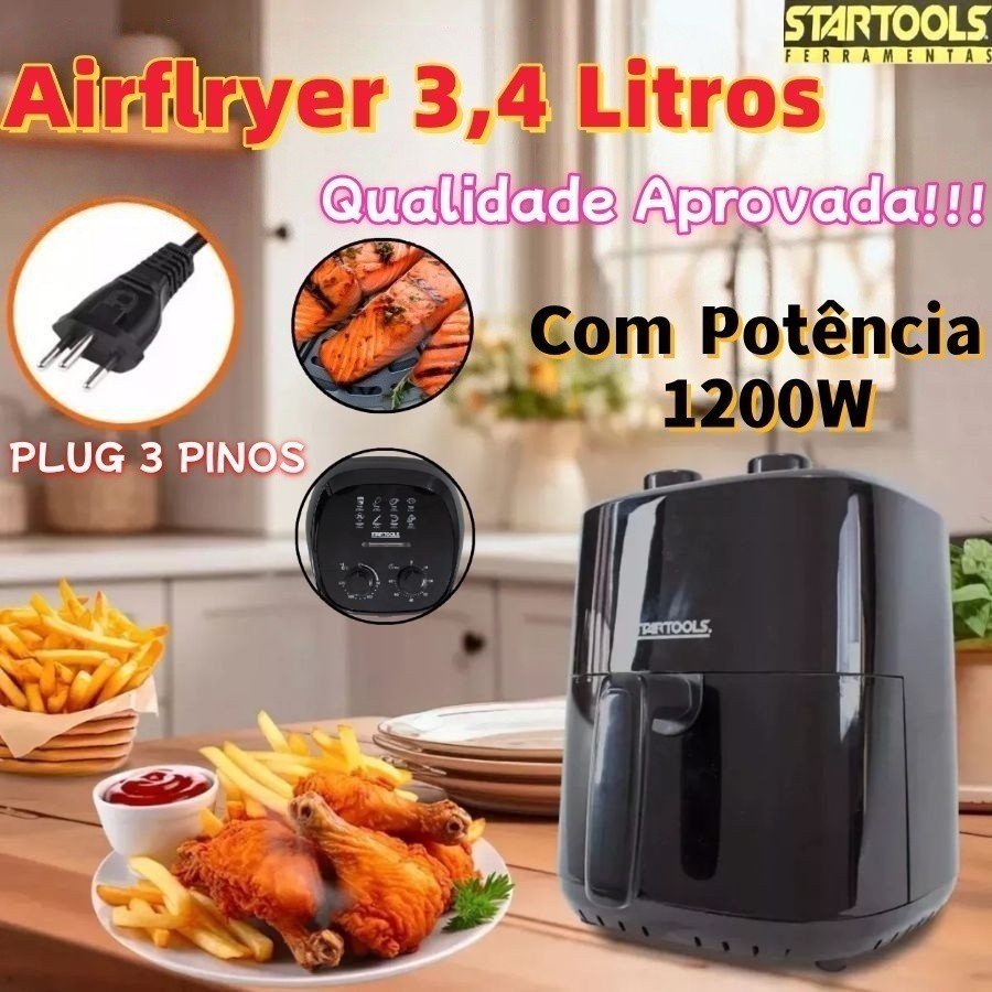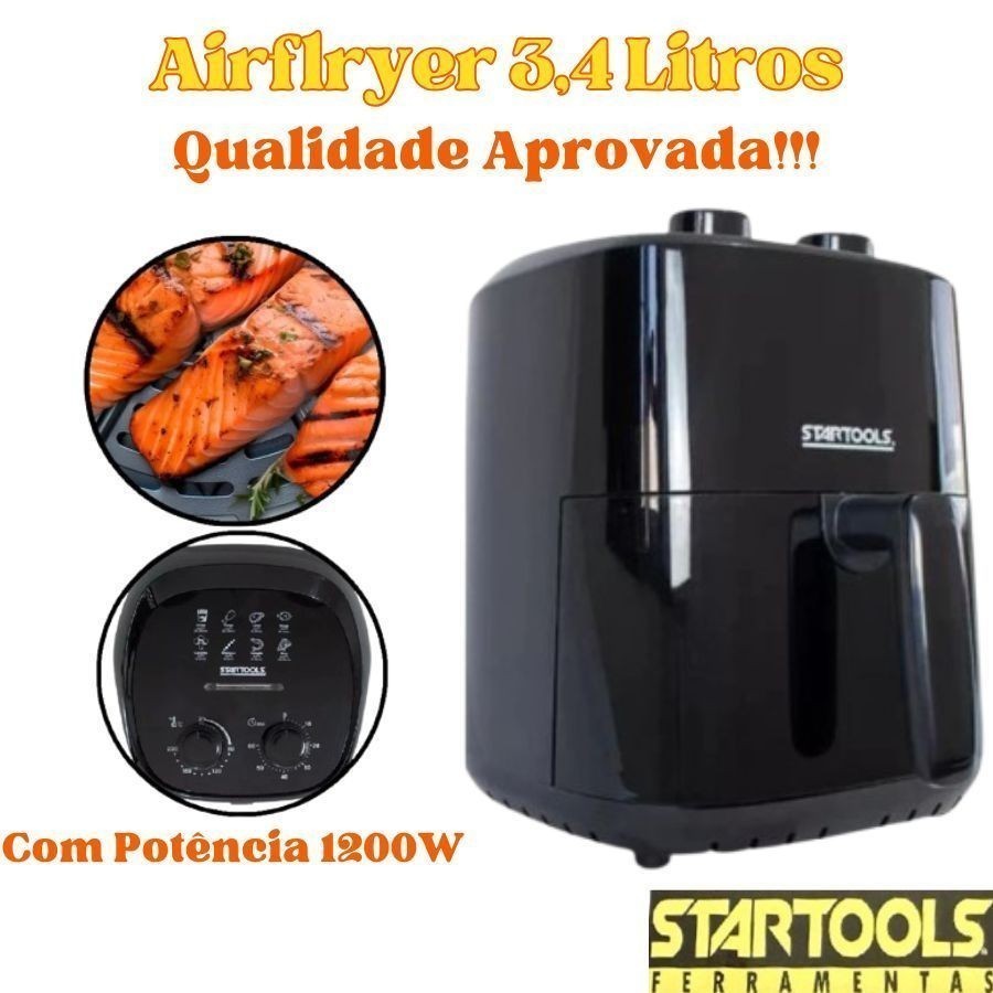 Comprar na ShopeeFritadeira Airflryer 3,4 Litros Startools Potência De 1200W 127V Ou 220V Elétrica 28x27x25Cm Preto