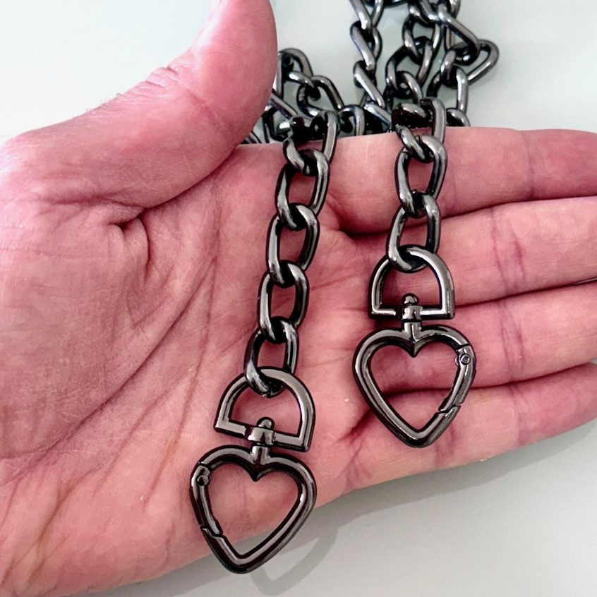 Comprar na ShopeeAlça de Bolsa Corrente com Mosquetão, Argola Articulada e Pingente Coração Níquel – Alça Metálica
