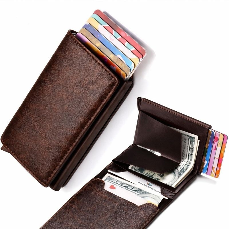 Comprar na ShopeeCarteira Masculina Slim Couro com Porta Cartão Automático Pop-Up Antifurto RFID – Design Moderno e Compacto