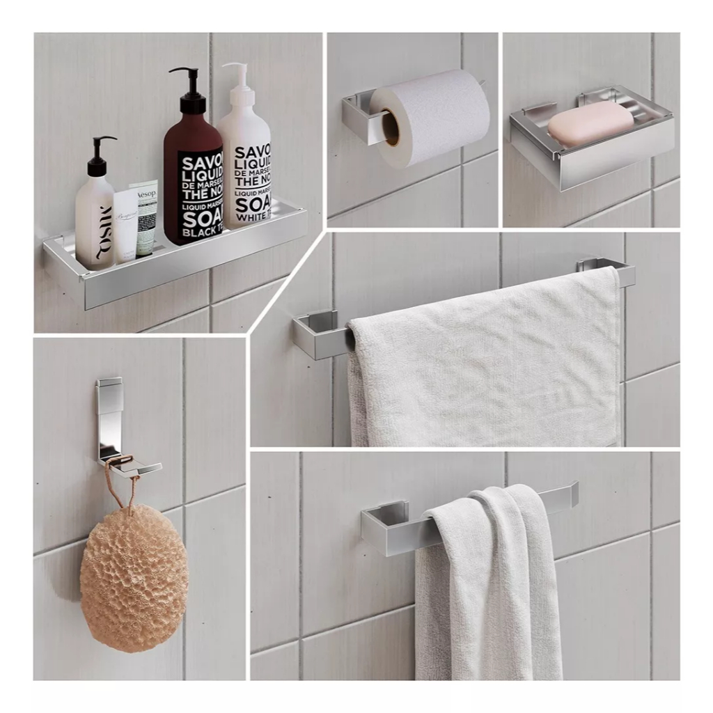 Comprar na ShopeeKit Acessórios Para Banheiro Lavabo Alumínio Maciço Polido Cromado 6 Peças Anti Ferrugem