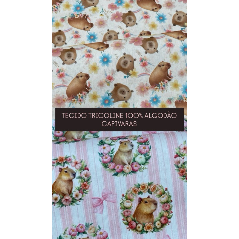 Comprar na ShopeeTecido Tricoline estampado 100% Algodão Capivara e Florzinhas - 0,25cm x 1,50mt