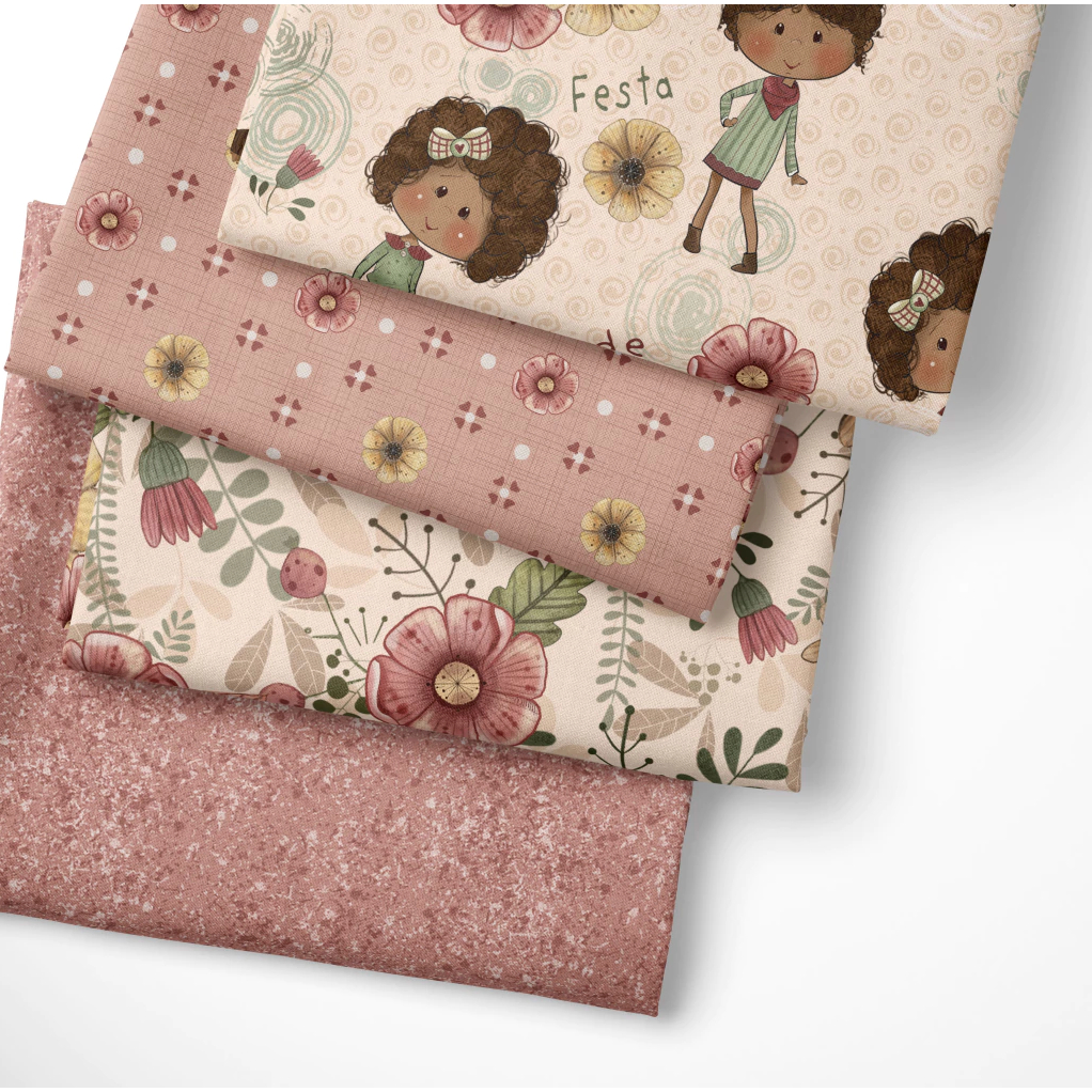 Comprar na ShopeeKit 4 Pedaços 75x50 cm ALEGRIA MENINAS - Tecido Digital Tricoline 100% algodão Fricotes e Fuxicos