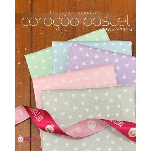Comprar na ShopeeKIT 5TRICOLINES CORAÇÃO TONS PASTEL AQUARELA - Medida 25x70cm - 100% ALG