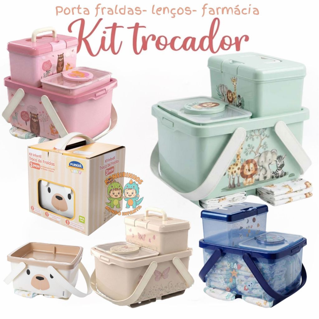 Comprar na ShopeeKit Trocador Caixa Organizadora Fraldas + Caixa Farmácia e Porta Lenço Umedecido Bebê Alça Plasútil