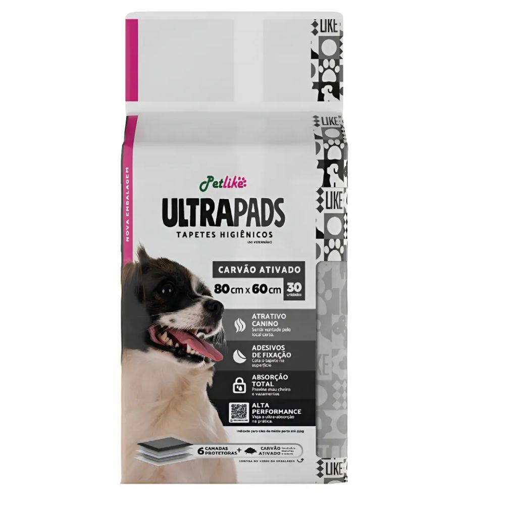 Tapete Higiênico Para Cães Petlike Ultrapads Com Carvão Ativado 80 cm x 60 cm Com 30 unidades