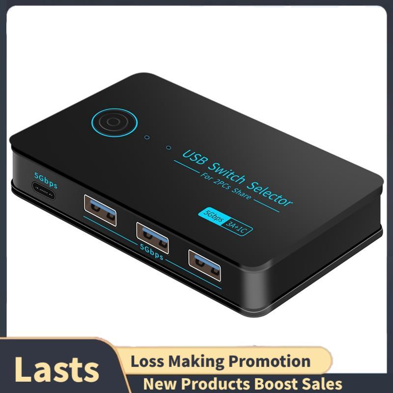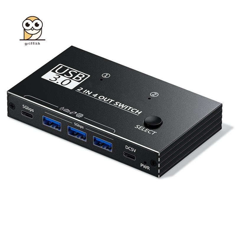 USB 3.0 Switch 2 Entradas 4 Saídas C Porta Hub Para Teclado Mouse