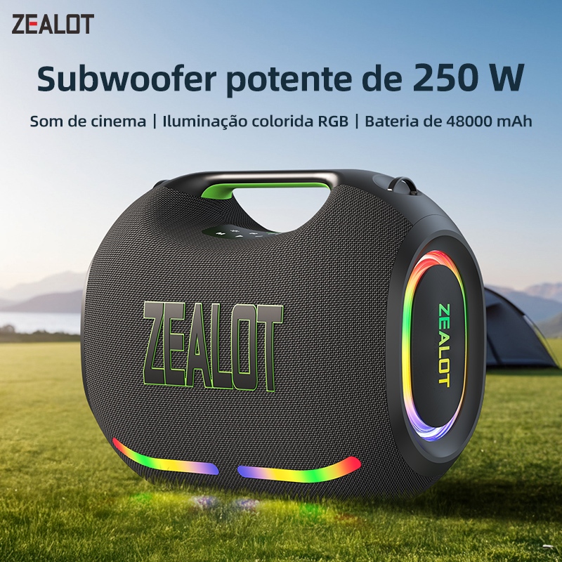 ZEALOT ZE21 Caixa de Som Bluetooth 250W | Alta Potência | Portátil | Alta Autonomia | TWS Estéreo | Power Bank | À Prova