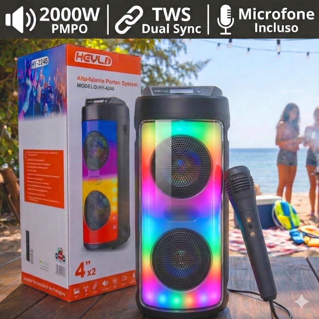 Comprar na ShopeeCaixa De Som 2000W Potente + Microfone p/ Karaokê TWS LED RGB - Festa Garantida / Envio Imediato