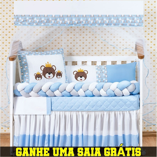 Kit Protetor de Berço Kids com Mosquiteiro Comum 7 peças Realeza Marinho