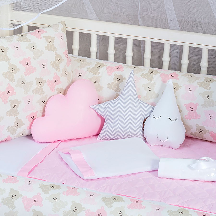 Protetor de berço menina ursinho 2 laterais 13 peças rosa claro