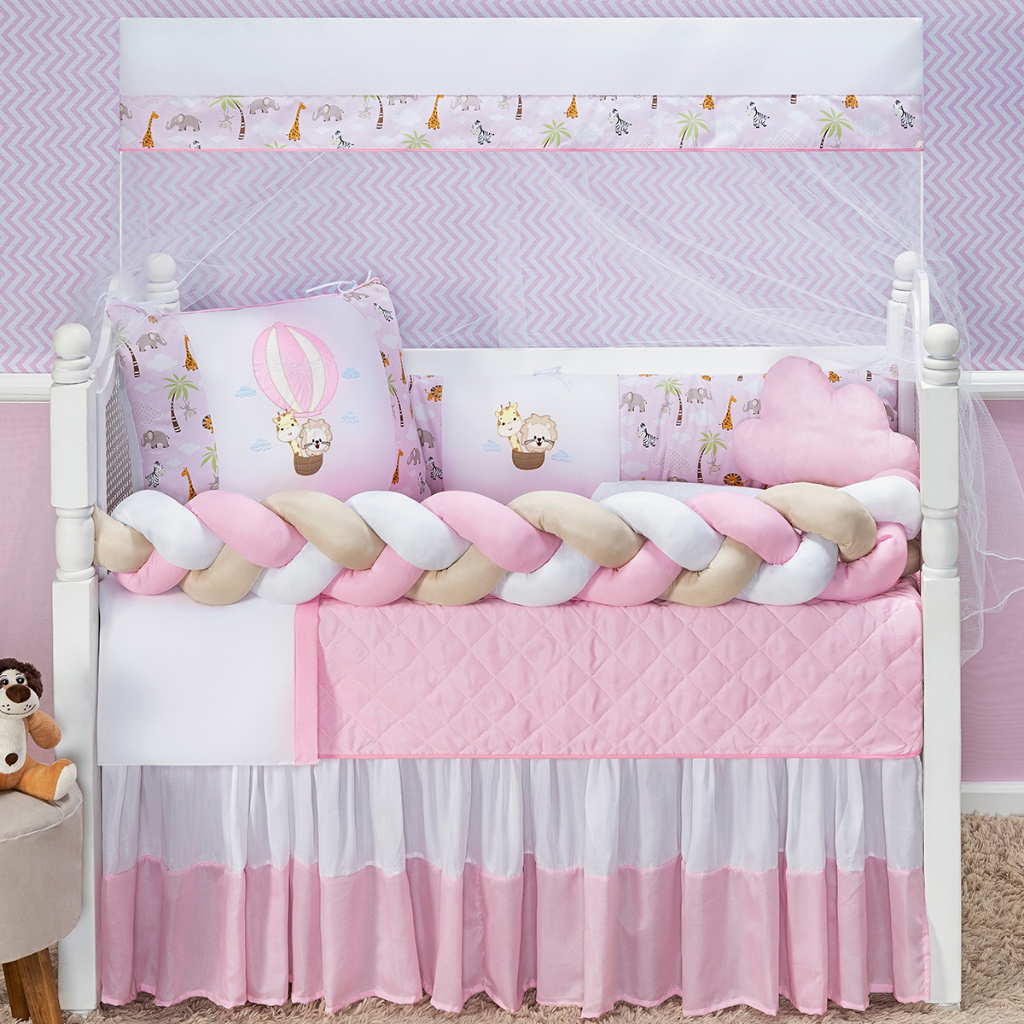 Kit Protetor de Berço Trança 11 Peças Leãozinho Balão Novidade