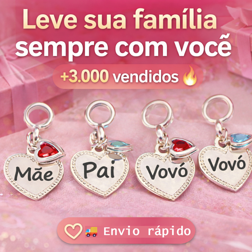 Berloque Família Mãe Pai Vovó Coração Charm Pulseira Presente Prata