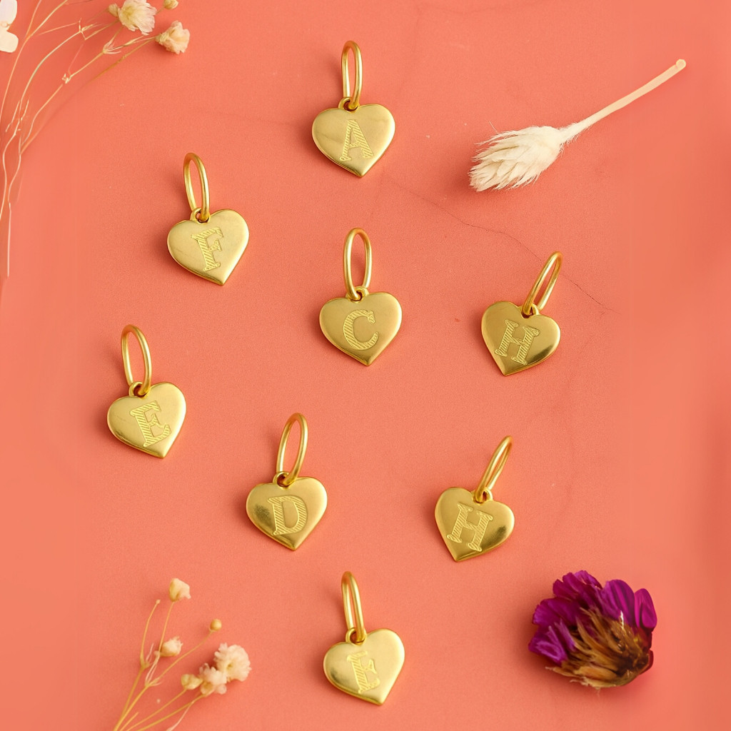 Comprar na Shopee| SEMI JOIA | Pingente de Letras Inicial Mini Letra Coração Banhado em Ouro Legítimo 18k