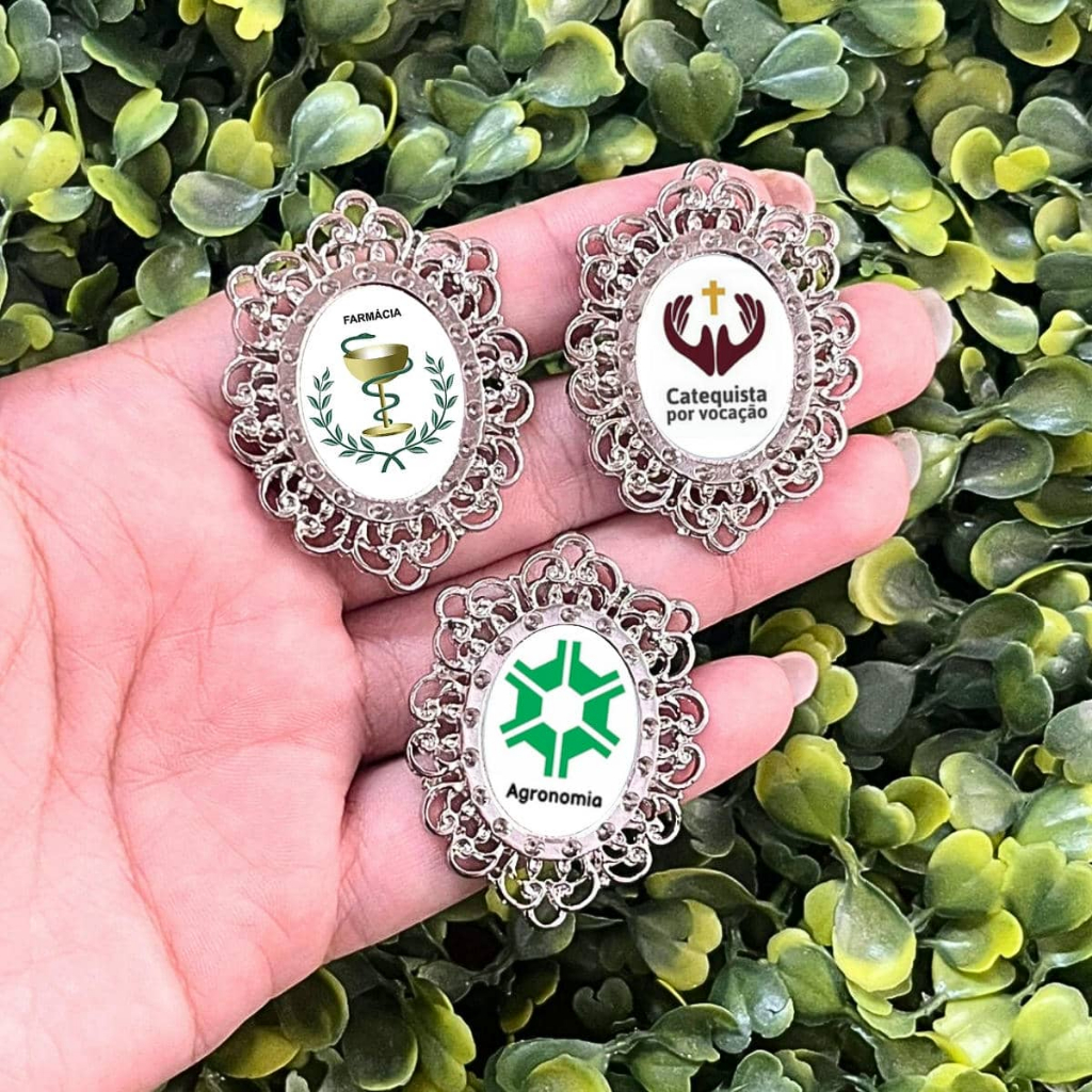 Relicário Grande para Terço Profissões Resinado Prateado Medicina Enfermagem Pedagogia Agro Adm Direito Fisio Nutri