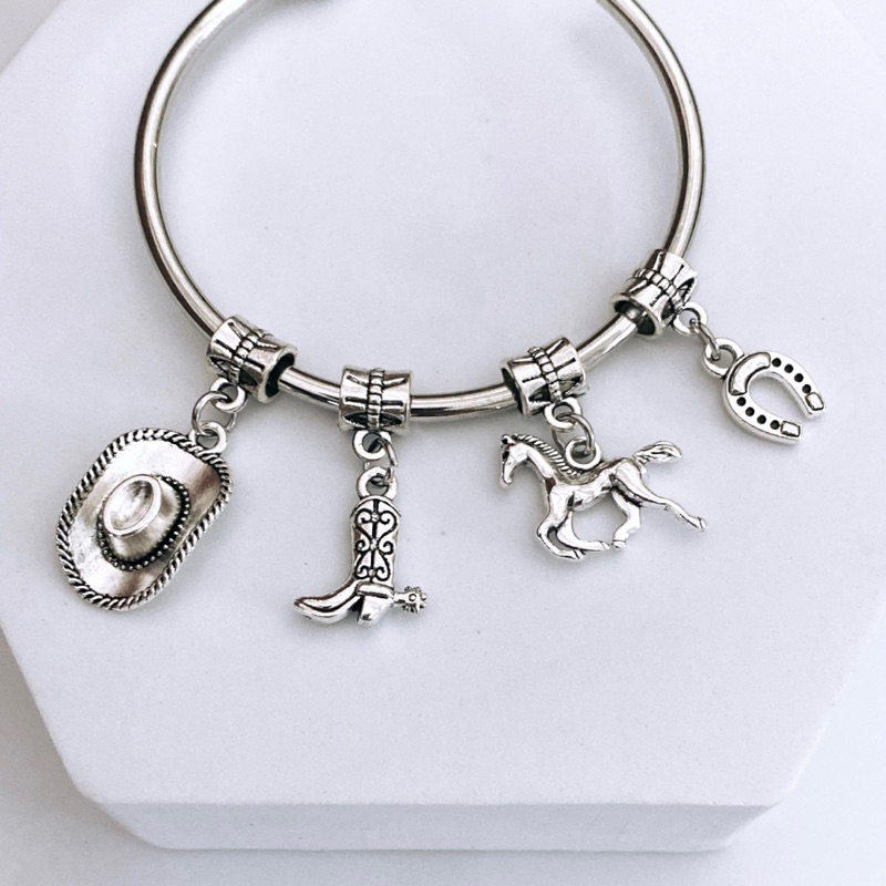 Berloque Pingente Bota Chapéu Ferradura country Roça Agro cowboy Peão Boiadeiro Banhado a Prata 925